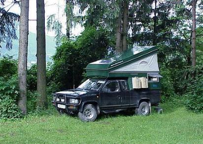 Schon bald haben wir ein schönes Fleckchen (bei freier Aufstellmöglichkeit!) im abgelegensten Eck des Campingplatzes gefunden und stehen mit dem Redaktionsfahrzeug dort sehr gut, nachdem einige "echte" Camper bei unserer langsamen traditionellen Vorbeifahrt mit Sandblechen und diesmal wieder Wasser-Kanistern (das restliche "Zellerreit-Wasser" muss schließlich verbraucht werden!) fast ins Stolpern gekommen wären ...