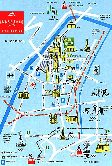 © 1999 J. de Haas (Fotos mit Sony Mavica MVC-FD91), Stadtkarte: Innsbruck Tourismus