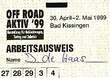 OFF ROAD AKTIV ´99Bad Kissingen30.04. - 02.05.99"Arbeitseinsatz mit Arbeitsausweis" |