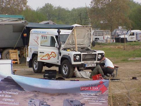 Szenenwechsel: Am Vorabend, Donnerstag 29.04.99 finden wir uns bei AERO-PLAST in Hassfurt ein - am Stand dieses Herstellers werden wir unseren Explorer als Exponat ausstellen - das Redaktionsfahrzeug ist immerhin weit genug herumgekommen, um auf dem Stand überzeugend die Anforderungen an ein pragmatisches Expeditionsfahrzeug demonstrieren zu können.