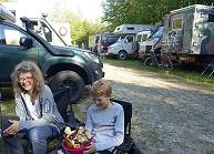 Tagsüber laufen wir auf dem Platz herum, schauen, was es hier so alles gibt und fachsimpeln über Fahrzeuge, deren Ausstattung, Reiseziele, Internetforen und vieles mehr. Mancher führt stolz seine Eigenausbauten vor und hat für Ratsuchende den einen oder anderen Tipp. Ein kleiner Flohmarkt mit aussortierter Expeditionsausrüstung ergänzt das Treffen und bietet so manches Schnäppchen.