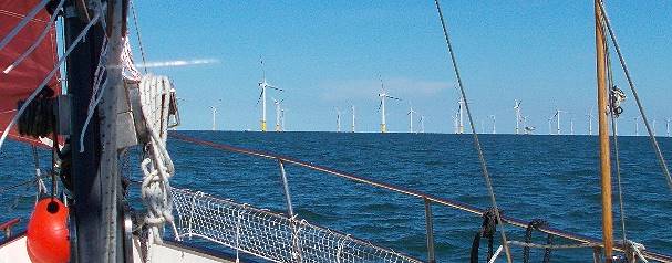 Der Windpark liegt mittlerweile östlich von uns: Er ist fast fertig, zur Zeit sind noch Bodenarbeiten notwendig, um die gewonnene Energie an Land zu bekommen. Nach Freigabe des Windparks kann man diesen künftig auch mit einer Yacht durchfahren, die Bedingung dafür soll eine Bootslänge bis 24 m sein. Fischerei darf innerhalb des Windparks nicht betrieben werden, die vielen zur Zeit überall entstehenden Parks werden dadurch zwangsläufig zu Fischschutzgebieten. Hier kann sich dann der Grund der Nordsee von den Fanggeschirren der großen Fischkutter erholen, der Fischbestand in diesen Gebieten wird besser werden und die Tiere haben die Möglichkeit, wieder auf eine richtige Größe zu kommen. Natürlich nur so lange sie auch im Bereich des Windparks bleiben ...