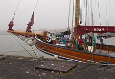 Der Sturm aus dem Westen kommt immer näher und soll dann auch wieder einige Tage dauern. Dadurch ist an eine Weiterfahrt für uns Richtung Osten nicht mehr zu denken. Wir bleiben dort sonst womöglich hängen und kommen nicht mehr rechtzeitig zum Urlaubsende zurück. Auch der Besuch auf der Noah fällt leider aus: Das Schiff soll morgen früh ablegen und die Vorbereitungen haben zu viel Zeit in Anspruch genommen. So wird daraus am Ende nur nur ein kurzes Verabschieden ...