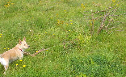 Ast kommt. Für Loona ist das gut: Endlich Stöcke zum jagen und