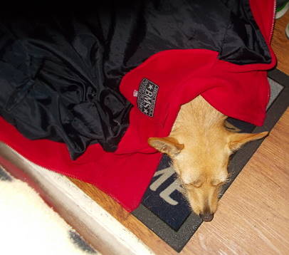 erschöpft. Wir legen eine Jacke auf sie drauf und sie schläft bald ein.