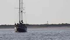 Wir gehen bald mit ihr an Land, die erste Wiese ist ihre und die lange Fahrt vergessen. Der klobige Oldie pacifico fällt sofort auf: Die Flagge der internationalen Meeresschutzorganisation Sea Shepherd bleibt am Mast, so etwas gibt es hier auf Norderney sonst nicht zu sehen ...