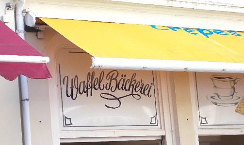 Stadt Norderney begegnen wir auf einem Platz einer Waffel-Bäckerei.