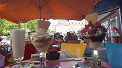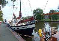 Zum Tagesabschluss geht es nachmittags wieder zum Eis- und Fischbrötchenessen zum Emder Ratsdelft: Der wenige Schlaf ist nicht zu übersehen, selbst Loona läuft nur schlapp auf ihren kurzen Beinen hinterher ...