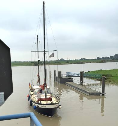 in Weener bei fast voller Flut ankommen. Zuerst bleibt uns der graue