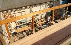 Der Zugang zum Schiff ist breit, sicher und sehr rutschfest. Auf dem etwas tiefer gelegenen Achterdeck betreten wir schließlich die Diego: Die Ladeluke des Achterdecks ist geöffnet. Hier haben die Betreiber des Schiffs eine Tischlerei für die vielen Holzarbeiten innen wie außen an Bord eingerichtet. Solche Arbeiten finden immer statt, besonders in der Winterzeit werden viele der hölzernen Handläufe an Deck abgebaut und renoviert. Auch Arbeiten zur Erhaltung des Stahls an Bord fallen ständig an.