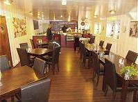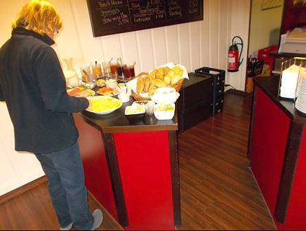 Der Tag beginnt wieder neblig trüb und kalt: Keine Spur mehr vom sonnigen gestrigen Tag. Wir hatten uns bereits gestern für das Bordfrühstück angemeldet und werden uns erst einmal ausgiebig im Frühstücksraum umsehen. Dieser Raum ist der kleinen Kabinenanzahl angepasst, trotzdem ist alles da, was für ein gutes Frühstück notwendig ist. Eine Anmeldung am Vortag ist aber unbedingt erforderlich.