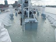 Wir nehmen noch einen Blick nach vorn auf das Hauptdeck: Das werden wir allerdings erst morgen besuchen. Nun steht zunächst der Besuch eines anderen Museumsschiffes an, das ehemalige britische Feuerschiff LV 13 ganz in der Nähe ist unser Ziel.