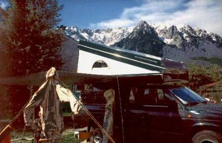 Aber dann - am Abreisetag kam dennoch die Sonne in störender Weise durch und zeigte mit einem Blick alle zahmen und wilden Kaiser in unmittelbarer Nachbarschaft - wer hätte das gedacht! Und so kam es wie es kommen musste: das unvermeidliche Sitzen unter der Explorer-Zeltplane war wieder mal angesagt kurz vor der Rückfahrt und alles konnte so schön trocknen!