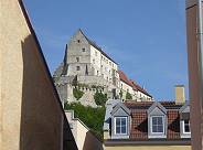Wir erklimmen die 420 Meter hoch gelegene Hauptburg von Süden, hier führt ein Fußweg von der Altstadt hinauf, einen Kilometer weiter nördlich ist der Eingang zum fünften und letzten Vorhof der Burg ebenerdig. Die Festung erstreckt sich in nordsüdlicher Richtung über einen langen und schmalen Bergrücken, der die Salzach und die Altstadt vom gegenüber liegenden Wöhrsee trennt.