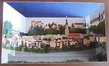 Wir spazieren zunächst entlang am Ufer der Salzach, die dem Ort direkt an der bayrisch-österreichischen Grenze auch die Bezeichnung "Salzachperle" verschafft hat. Dass hier schon eine gehobene Wohngegend am Rande der malerischen Altstadt vor uns liegt, erkennt man bereits nach wenigen Metern. Über allem erhebt sich die beeindruckende Hauptburg, die den Anfang der gewaltigen Burganlage markiert. Irgendwie passend zu diesem Anblick ein Mini-Diorama, das kleine "Guckkästchen Burghausen", das wir später im Burgmuseum für den Modellkeller mitnehmen werden (letztes Bild oben).