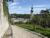 Vorbei am empfehlenswerten Lokal "Da Claudio", von wo aus man bereits auf den gegenüberliegenden Höhen die ausgedehnte Burganlage betrachten kann, führt uns der Weg nun hinunter in die Stadt Burghausen: https://www.visit-burghausen.com/