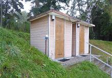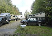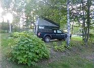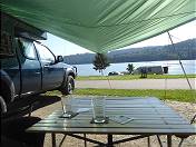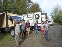 Wir beziehen einen Luxuxstellplatz: Dieser verfügt - selten unterwegs gesehen - auf seiner Rückseite über eine eigene abschließbare Sanitäreinrichtung mit Dusche, WC und Außenstromversorgung. So etwas muss man einfach ausprobieren! Interessante Platznachbarn gibt es auch: Sie beschweren sich bei uns über den Platz, über Geräusche von mechanischen Fischködern, über nächtliche Lärmbelästigung durch eine Studentengruppe, über Qualm eines Rauchers vom Nachbarplatz, der uns oft seinen Hund mit Ballwürfen herüberschickt - wir erleben nichts davon!