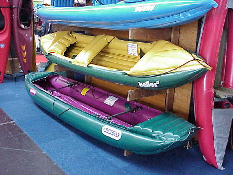 Mehr Interesse bei uns dagegen für den Bereich Boote, die vom Faltboot bis zum Kanadier ebenfalls reichhaltig ausgestellt sind. Schließlich hatten wir auf der C-B-R 2000 unseren Aufblas-Kanadier Montana der "Gugelwerke" geordert, ein Teil, mit dem wir äußerst zufrieden sind.