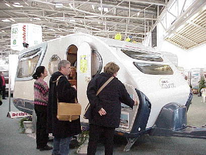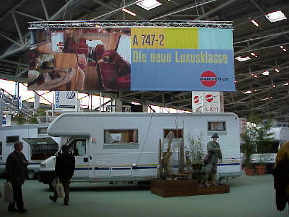 Wenn auch die Wohnwagen wie z.B. am Stand von Dethleffs in Halle A4 manchmal etwas anders aussehen als gewohnt, so ist doch eigentlich alles wie immer: Wohnwagen-Riesenkästen auf 2 Achsen sieht man hier wieder wie auch die dreiachsigen Womos - auch nicht unser Bereich ..!