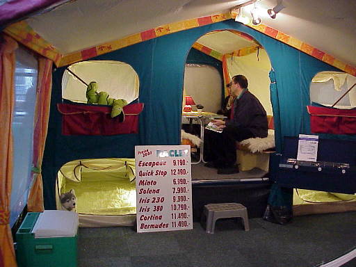 Also setzen wir unseren Rundgang fort - die manchmal wirklich lustigen Zeltkonstruktionen, die hier zu finden sind, haben einen hohen Unterhaltungswert, zumindest so lange, wie man sie nicht mit sich herum schleppen muss oder gar im isländischen Hochland bei waagerecht einfallendem Regen auf- und abbauen will! Aber seit unserem letzten Zeltabenteuer bei Slowenien 00 wollten wir eigentlich das nächste Mal wieder die Kabine mitnehmen ...