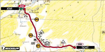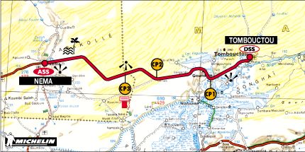 Keine besonderen Schwierigkeiten dürfte es auf der harten, aber sandigen Fahrbahn geben. Die Sahel-Piste ist recht schnell, aber bucklig und führt die Teilnehmer nach Mauretanien. Allerdings wird die Hitze Mann und Maschine auf dieser Etappe schwer zu schaffen machen.