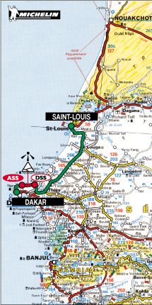 Über eine kurvenreiche Piste geht's zwanzig Kilometer bis zum Strand, wo die Spezialwertung stattfindet. Der Strand führt zur "Langue de Barbarie", dem Ende dieser Etappe. Zahlreiche Fans, Partner oder Freunde, die zum Finale dieser 21. Auflage der Rallye Paris-Dakar angereist sind, werden die Fahrer bei ihrer Ankunft in Senegal willkommen heißen.
