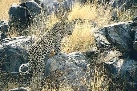 Wir sehen Elefanten, Geparde, Löwen und auch das seltene Spitzmaulnashorn. Bei den Camps von Okaukuejo und Halali wird jeden Abend eine Wasserstelle von starken Scheinwerfern beleuchtet; man kann bequem alle Arten von Großwild an der Tränke beobachten. Wir verlassen Etoscha und fahren durch menschenleere Gebiete nach Nordwesten.