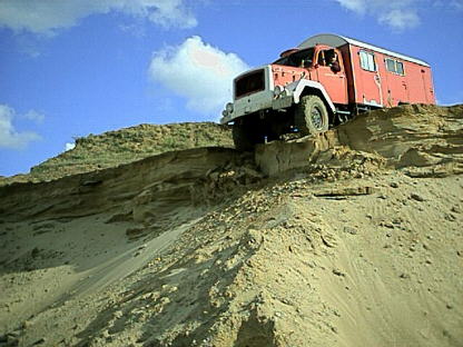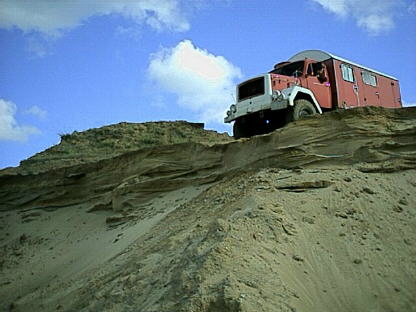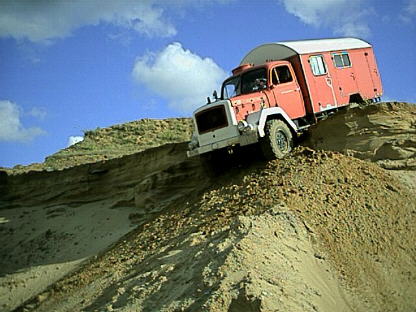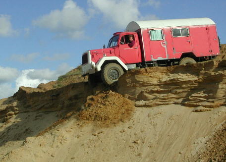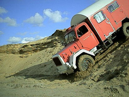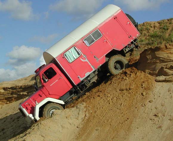 3. Vorderachse runter, das Fahrzeug hat immer noch mit der Hinterachse Traktion. So kann man also stehen bleiben und den Gang wählen, der zum Weiterfahren benötigt wird ...