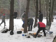 Ein paar Tage vor dem entscheidenden Datum kam aus der Lüneburger Heide die erlösende Nachricht: Der Winter war plötzlich zurück und überzog zumindest Norddeutschland noch einmal mit Frost und Schnee. Am Freitag, dem Abreisetag, lagen gut deckende 10-15 cm Schnee und der noch anhaltende Dauerfrost versprach ein Treffen wie man es sich wünscht - "Winter" Lager halt. Keine Gefahr des Einsinkens im matschigen Boden, alles bleibt schön trocken und sauber. Wunderbar!