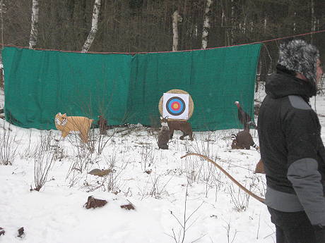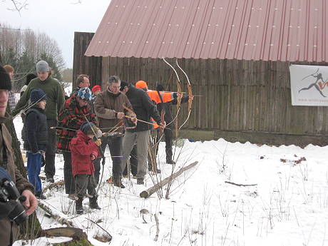 Nachdem sich die paddelwillige Truppe auf den Weg gemacht hatte, fanden sich so nach und nach die Interessenten, natürlich allen voran die Kinder, zum Bogenschießen ein. Von etwa 10:30 Uhr bis zum Beginn der Dämmerung gab es dann am Schießstand das volle Programm. Der stetige kalte Ostwind und Temperaturen weiterhin deutlich unter Null Grad schienen aber besonders den Kindern nicht das Mindeste auszumachen.