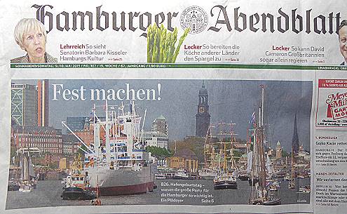 "Was für eine Stadt, was für ein Fest" lautet der Titel zum "Thema" im Hamburger Abendblatt vom 9./10. Mai 2015, eingeleitet vom Zitat eines französischen Philosophen: "Dem weht kein Wind, der keinen Hafen hat, nach dem er segelt."