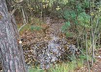 Der Regen wird zunächst einmal sogar noch heftiger. Die beiden Schwäne im ersten Teich lassen ihn ruhig über sich ergehen. Sie halten zu mir einen großen Sicherheitsabstand, näher lassen sie mich nicht an sich heran. Die Straßen und Wege sind wegen der Bewirtschaftung der Teiche sehr gut ausgebaut. Dabei begegnen mir unterwegs ein Paar Schuhe am Wegesrand, ein ungewöhnlicher Anblick: Da hat doch vielleicht jemand während seiner Wanderung die Schuhe getauscht und dann möglicherweise "vergessen", sie mitzunehmen!? Bald darauf lässt der Regen erfreulicherweise nach und hört schließlich ganz auf ...