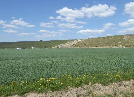 Ackerland, versuchsweise sogar mit einem Weinberg an künstlich geschaffener