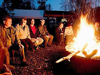 ein Lagerfeuer auf uns Spätankömmlinge wartet. Manche bekannte Gesichter