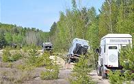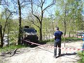 Der erste Fahrtag beginnt mit einer Rundfahrt im Pulk über das Gelände des 4x4 Adventure Clubs Lauchhammer e.V. mit allerlei Buckeln, Mulden und Schräglagen. Oliver Bothe hat einen sehr spannenden Trial durch den Wald gesteckt, der mit unseren größeren Wendekreisen gerade noch - aber äußerst schwierig - zu meistern ist. Auch ich ecke da und dort mal an, was zu Strafpunkten führt. An einer kurzen Steilrampe bergauf bleibe ich plötzlich hängen. Mehrere Versuche ergeben das gleiche Bild: Die Vorderachse dreht staubaufwirbelnd durch, während sich die hauptsächlich belasteten Hinterräder nicht bewegen. Wie das? Die Zentralsperre ist doch drin, beide Achsen sind damit gegeneinander gesperrt. Aber offensichtlich stimmt das nicht. Was ist hier defekt ..?