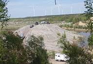 Nach dem Mittagessen geht es endlich in den Tagebau: Für den ersten halben Fahrtag hat Oliver den seit Jahrzehnten stillgelegten Tagebau Klettwitz ausgewählt, der inzwischen schon in der Flutungsphase ist. In den vergangenen 20 Jahren sind hier ohne menschliche Einflussnahme zahlreiche kleine Büsche und Bäumchen - vorwiegend Birken - gewachsen, die der ganzen Landschaft ein frisches und freundliches Gesicht geben und mancherorts ein wenig an die skandinavische Tundra (ohne Bäume) bzw. Taiga (mit Bäumen) erinnern ...
