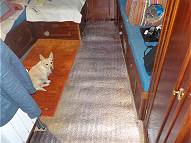 Wir verlegen nun im gesamten Schiff eine Bodenisolierung: Der Winter wird nun wohl bald richtig hereinbrechen. Die Isolation ist hauchdünn, aber sehr wirksam. Man kann barfuß darauf stehen und die Füße werden tatsächlich von unten warm. Die mit Diesel betriebene Wasserheizung läuft hörbar mit: Je kälter, um so öfter und länger. Ganz still wird es also selten an Bord ...