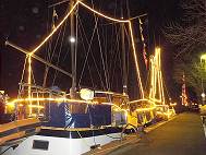 18 Meter Lichterkette der Weihnachtszeit von den Masten herunter.
