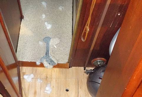 Ein einfacher Teppichboden für den Winter wird an Bord verlegt, um der Fußkälte des Schiffsbodens zu begegnen. Loona nimmt ihn ab: Sie ist zufrieden und lebt erst einmal spielerisch ihren Jagdtrieb aus. Ein weiteres Stofftier wird zerlegt: Doch nur teilweise, schließlich wird auch Loona langsam älter und außerdem lockt das Salonsofa mit der weichen Decke! Diese Liegeposition hat sie übrigens von Simone abgeschaut ...