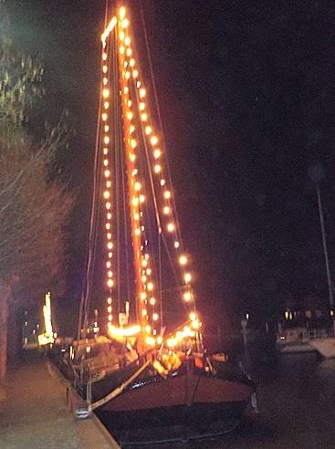 Während des Weihnachtsmarktes wird uns das niederländische Plattbodenschiff Mededinger unterstützen: In ihrem ehemaligen Laderaum ist heute wohnlicher Platz für mehrere Personen. Dort können die Besucher von uns angesprochen und mit Infomaterial versorgt werden. Die pacifico ist für eine größerer Menschenmenge einfach zu klein. Heute erhalten wir noch einen selbstgebastelten Weihnachtskalender von der anderen Besatzung. Im Salon der pacifico gehen die Lackierarbeiten inzwischen Stückchen für Stückchen weiter. Wegen der Geruchsbelästigung werden immer nur kleinere Flächen lackiert ...