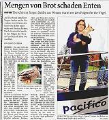 Mittlerweile gibt es immer wieder mal Zeitungsberichte vom Tierschutzschiff "pacifico": Ein solcher fand sich am 06.02.19 auch in der Ostfriesen-Zeitung (siehe Ausschnitt rechts). Thema dabei: Warnung von Jürgen in Sachen Enten und Fütterung ...