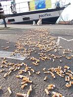 Die beiden Bilder oben links zeigen die weltweit erste Demonstration weggeworfener Zigarettenkippen für ihre artgerechte Entsorgung, die in Weener vor dem Tierschutzschiff "pacifico" endete. Loona und Mr. H. junior (von Jane) haben die Demonstranten empfangen und sich mit den beiden Anführern unterhalten (Bild links). Diese Bilder sind die Grundlage für ein neues Plakat an unserer Schiffsreling gegen das Wegwerfen von Zigarettenkippen in die Natur. Das Bild oben rechts zur Lage in der Zeit des Coronavirus. Hoffen wir, dass wir das überstehen. Leider gibt es viele unvernünftige Deppen um uns herum ... Seid gegrüßt und passt auf Euch auf!