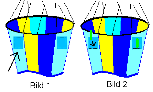 In die Taschen führen wir die Knicklichter ein (Bild 2). Ist die Windturbine z.B. an der Drachenschnur befestigt und dreht sich, hat man den Eindruck von glühenden Kreisen. Besonders hübsch ist es, wenn man eine ganze Reihe solcher Windturbinen in Betrieb hat. Wie alle Knicklichter sind auch diese nur einmal zu verwenden, glühen jedoch fast 24h. Man kann sich also 2 Abende damit vergnügen.