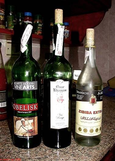 Motiviert von diesem einschneidenden Erlebnis suchten Petra und ich ein paar Tage später einen Alkoholladen in der Shari Dokki, unserer Hauptstraße auf, der uns von Lehrerkollegen schon früher empfohlen wurde. Dort erwarben wir zwei Flaschen ägyptischen Rotwein und eine Palette Heinecken Dosenbier. Als ich im Regal einen Uzo12 entdeckte, empfahl mir der Verkäufer ein uzoähnliches Gebräu mit dem Namen Zibiba Extra aus dem Lande. Der sei besser als der Uzo, meinte der Verkäufer. Die erworbenen Drogen verpackte der Verkäufer in schwarze Plastiktüten, mit denen wir schnell nach Hause eilten. Schwarze Plastiktüten gibt es sonst nirgends in Kairo. So waren wir auf dem Nachhauseweg wahrscheinlich gebrandmarkt und jedermann wusste um unser schändliches Tun ...