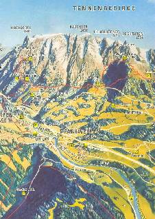 © Text/Bilder 2002 J. de Haas, Touristenkarte von "Region Tennengebirge"
