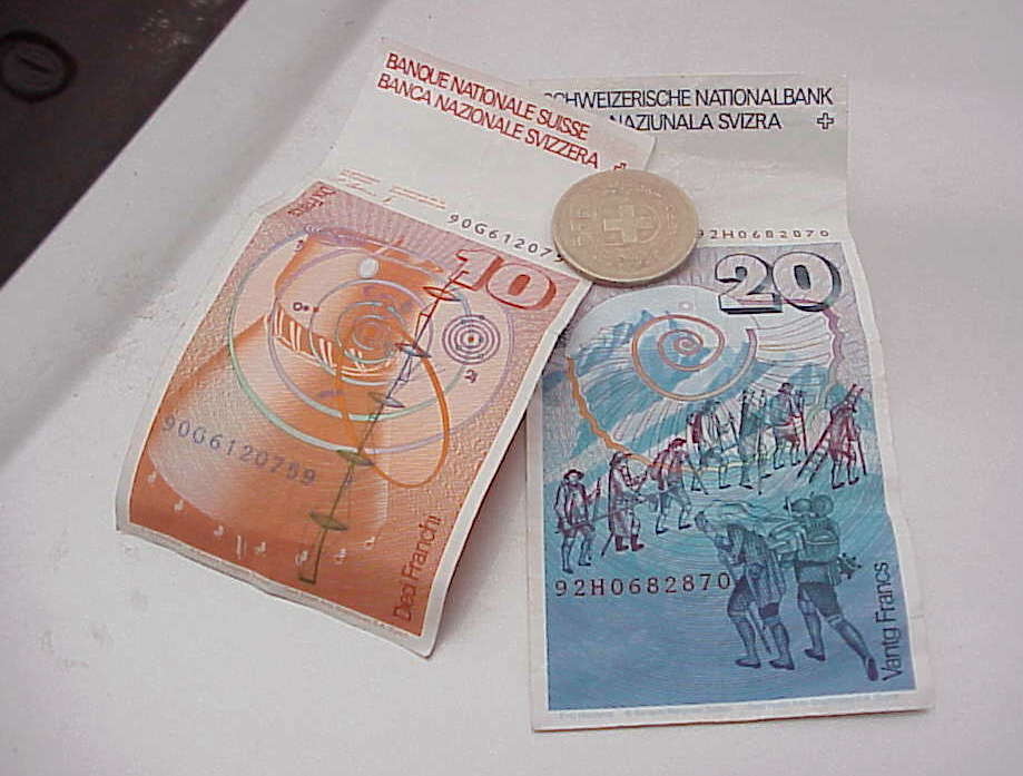 Da wir wie alle anderen "begeisterten" Teurobürger es mittlerweile gewöhnt sind, dass man uns das neue Spielgeld derzeit verstärkt und überall aus der Tasche ziehen will, ist die Reaktion der übliche Reflex: Wir packen unsere kostbaren Euros wieder weg und ziehen stattdessen anderes buntes Spielgeld aus der Tasche: Soll sie doch ihre komischen Fränklis bekommen! Doch dann folgt die Überraschung: Unsere auf den Ladentisch gelegten Schweizer Fränklis werden auch nicht akzeptiert: Die sind nicht mehr gültig, meint die Kioskbesitzerin, aber wir könnten die Scheine ja bei jeder Bank umtauschen.
