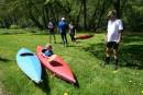 Als Ausgleich zum guten Essen bietet Volker eine Paddeltour an: Zu viert lassen wir uns zum Einstiegspunkt "Hubertus" fahren, wo man bei einer kleinen Slalomstrecke startet, um der Eger bis zum Campingplatz zu folgen.