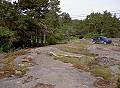 Nun heißt es nur noch einen passenden Platz für die Fotos finden: Viele Möglichkeiten gibt es nicht, denn es sind nur wenige Kilometer bis zum Fähranleger in Osnäs. Also halte kurz am Straßenrand, packe meine Münzen samt GPS und auf einen Felsen und schieße die Fotos: Der Stift auf der Karte zeigt ungefähr meinen Standort.