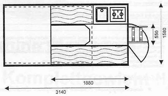 Ein typischer Schnitt durch einen Kabinenaufbau ist rechts dargestellt. Wichtig für die Lebensdauer und Dichtigkeit der Kabine (Vermeidung von Rissen durch extreme Verschiebungen) ist die Qualität der Klebungen sowie die unbedingt erforderlichen Innenwinkel.