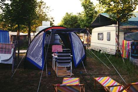 einem Campingplatz in der Nähe eines Sumpfgebietes gelandet und wurden